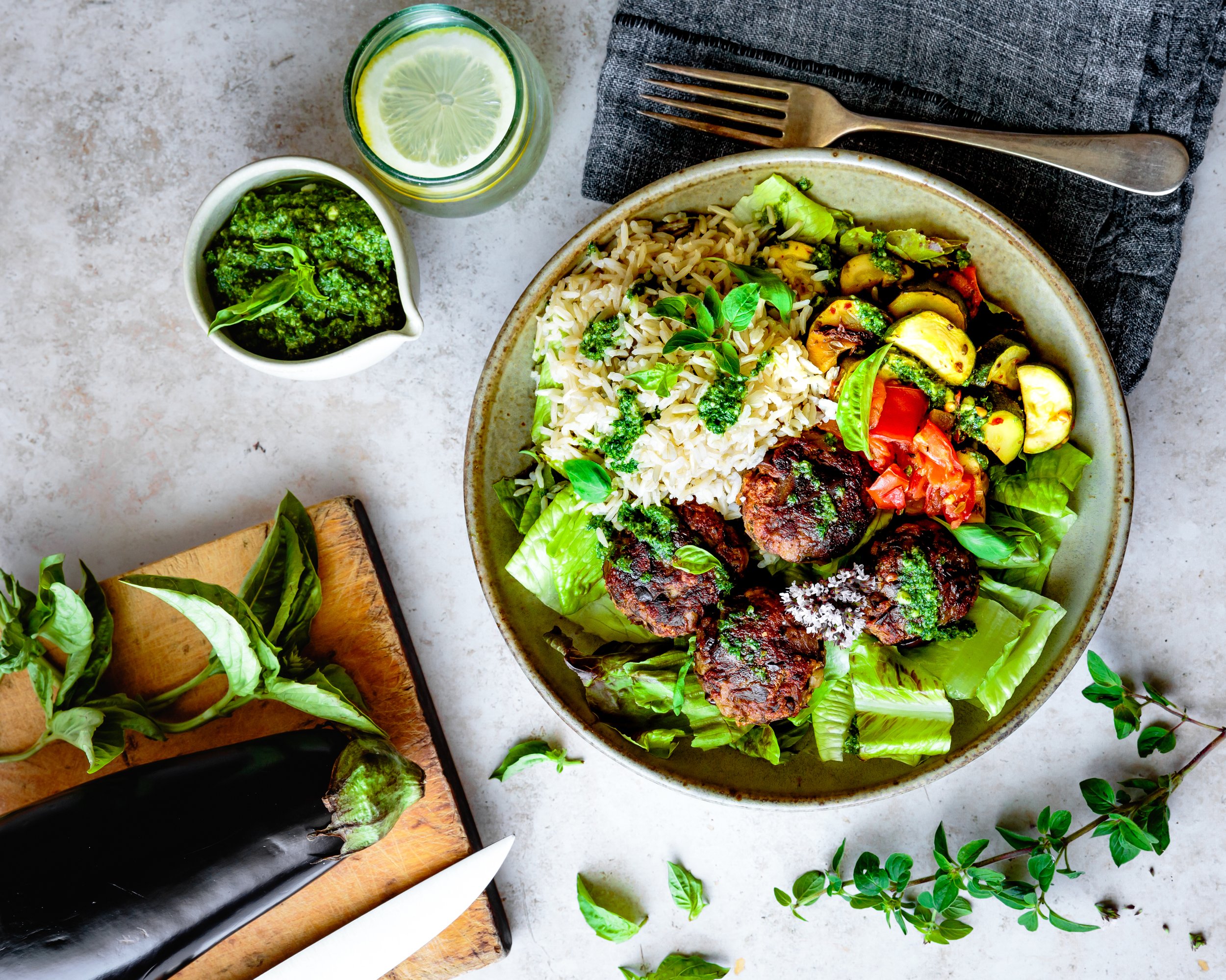 Roll out 12 meatless balls, drizzle (or brush) with oil and bake for 15-20 minutes.