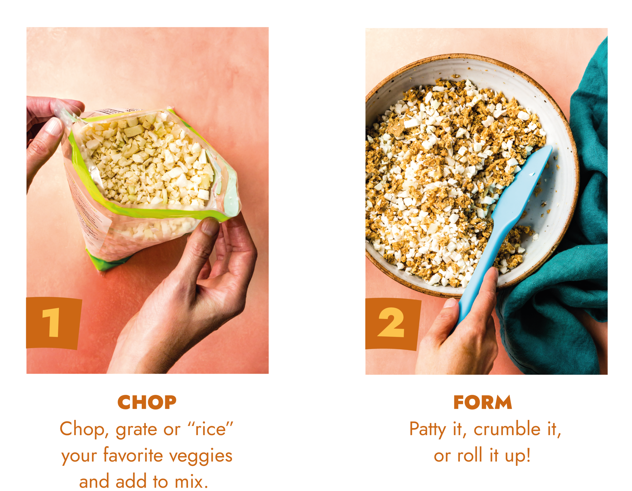 Works best with carrots, riced cauliflower, spinach, roasted eggplant, and sweet potato.
