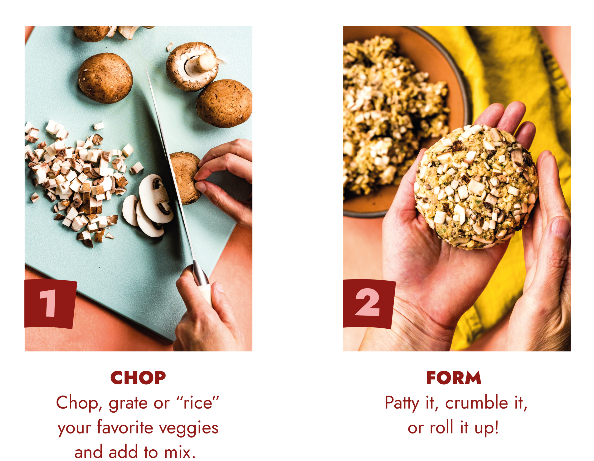 A balanced and versatile mix that is kid-friendly and works in a variety of cuisines. Make your own fresh veggie burgers or bake up some mixed veggie nuggets for the kiddos. Also great for sloppy joes, falafels, salad toppers, grain bowls, or top-add your own spices to make it your own!
